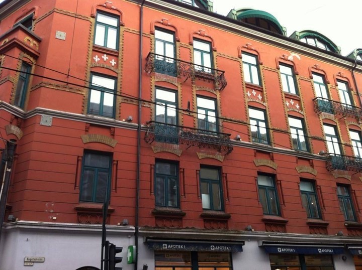 Bygning i sentrum - fasademaling